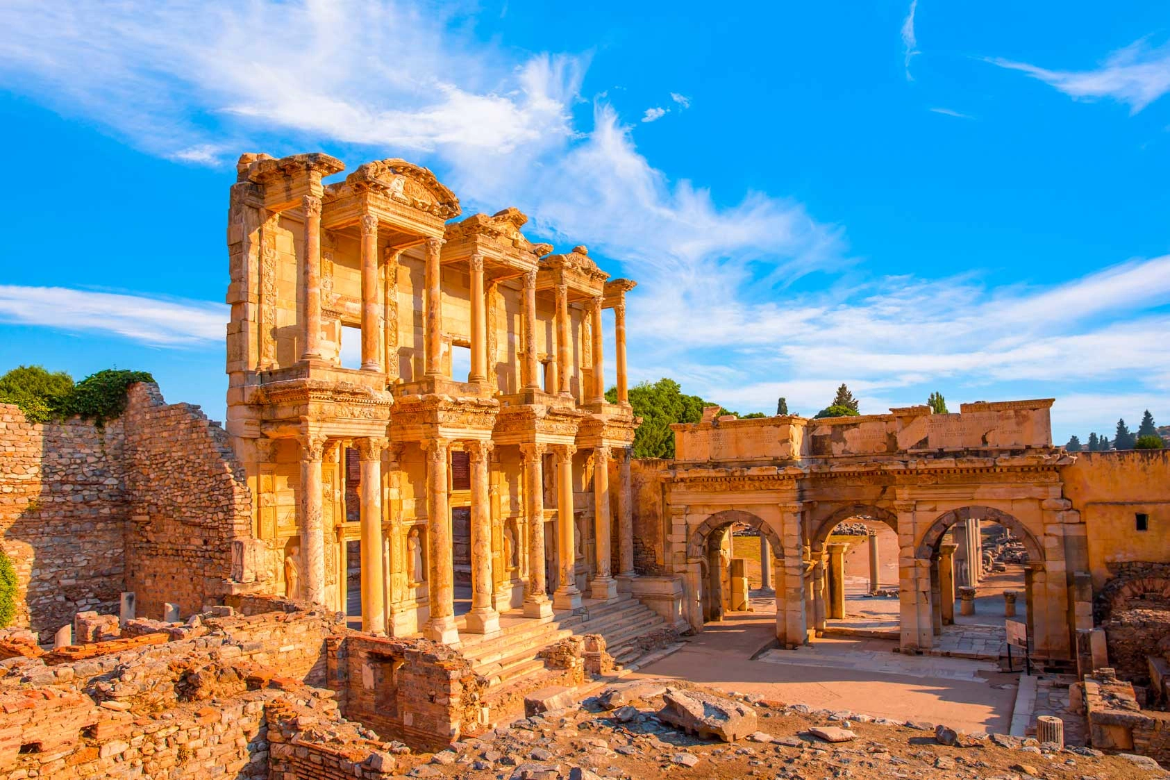 Salida hacia Éfeso, visita de la ciudad antigua mejor conservada de Asia Menor. Visitaremos el Templo Adriano, los Baños Romanos, la Biblioteca de Celso, el Odeón, teatro que tenía capacidad para 24.500 espectadores. Traslado al hotel, cena y alojamiento en Kusadasi (o Esmirna).